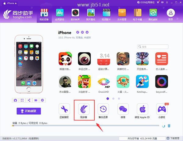 5.回到同步助手“我的设备”页面,点击页面底部的“同步推”,安装同步推,同步推已经率先更新支持iOS10,海量游戏应用等你来体验。