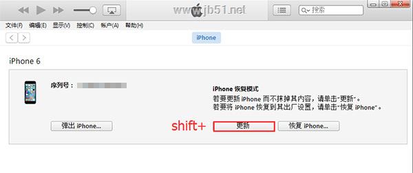 如果用shift+更新的方式依旧升级失败,那只能用shift+恢复的方式来升级,但如果之前没有备份资料,手机中的资料就保不住了。
