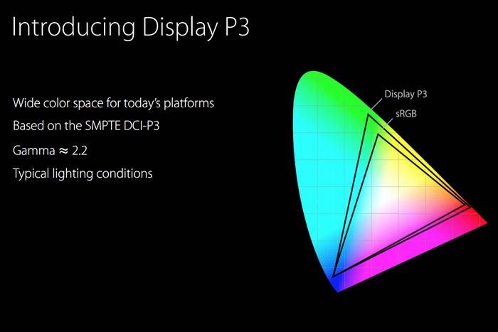 Display P3由苹果根据DCI-P3色彩空间制定的标准,在覆盖了100% sRGB外还有更广一些的色域,Gamma保持在2.2,而不是DCI-P3的2.6,由于DCI-P3是应用在数字电影领域,而iPhone 还兼顾照片方面,所以苹果作了调整,而White Point则为与DCI-P3和sRGB相同的D65。