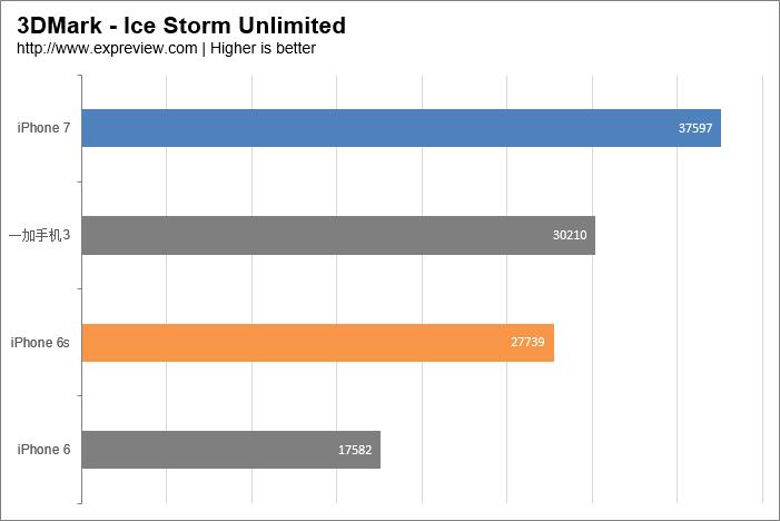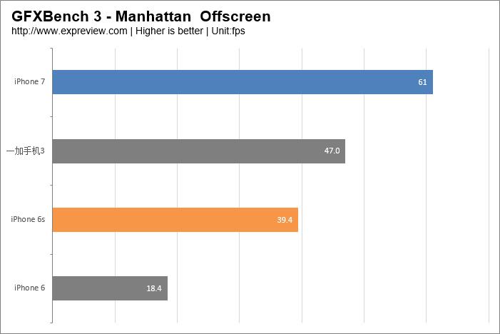 GPU方面,苹果仅表明是6核心GPU,在软件上显示为A10 GPU,暂不确定是否为Imaginatin Technologies最新一代PowerVR Series 8XT定制GPU,但官方宣称新GPU比iPhone 6快了3倍,比iPhone 6s快了50%,效能也更好,从跑分来看,进步较为明显。