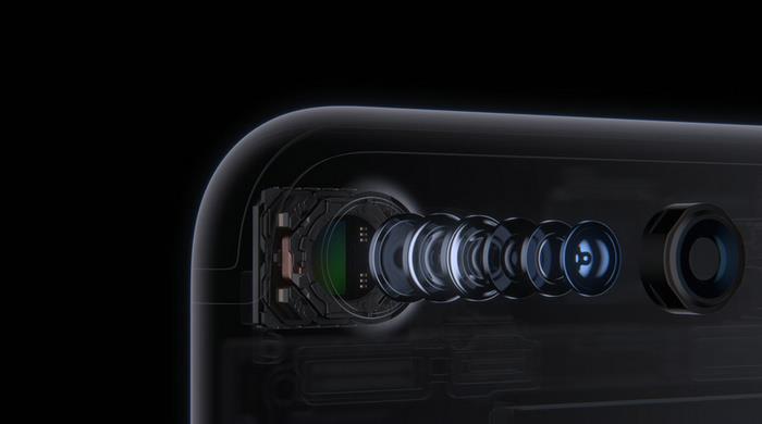 在iPhone 7上仍为单后置摄像头,但要比iPhone 6s上的大了很多,像素保持在1200万,但为全六镜式镜头,加入了OIS光学防抖,这已是目前旗舰手机标配,苹果没有再挤牙膏,还有更大的f/1.8光圈,进光量增加50%,True Tone闪光灯为4个双色温LED灯,亮度增加50%。苹果还提到广色域拍摄、全新的智能图像处理器、更快的对焦等改进,整体提升很大。