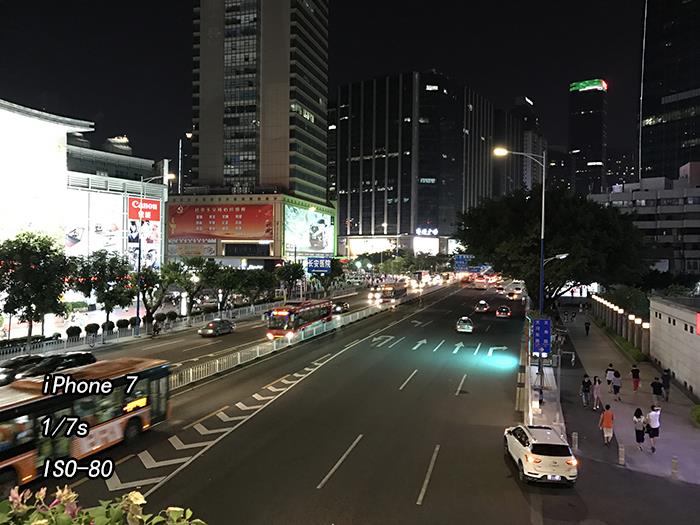 夜景方面,iPhone 7在取景时就能明显看到画面更亮,实际拍出来的画面也很明亮,整体质量属较高水准。虽说有了光学防抖和更大光圈,本可预测iPhone 7在弱光环境下的表现会提升,而最后成片确实让人满意。