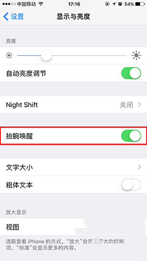iOS 10加入抬腕唤醒屏幕功能,只需要进入设置->屏幕与亮度,然后开启抬腕唤醒功能。之后只要拿起手机,屏幕会自动亮起,受放在Home键(无需按),大约3s后就会自动指纹解锁了。