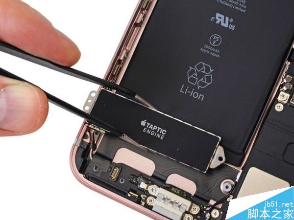 在拆解过程中的iFixit表示在打开iPhone 7 Plus的时候发现密封胶条要比iPhone 6s更粗,这能够更有效的阻止水进入到设备内部。在移除3.5mm耳机端口之后,在Lightning端口的左侧部分装备了Taptic Engine引擎模块和扬声器孔上装备了一个塑料减震器。相机部分装备了两个独立的传感器,两个镜头和两套光学防抖装置。
