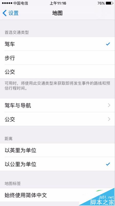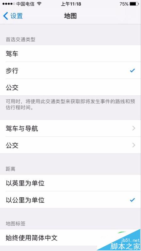 IOS10比起以前的系统多了可以设定地图首选交通类型,可以通过以下的方法来设定。