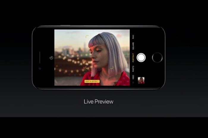 其实苹果并没有把景深照片实装在正式开卖的iPhone 7 Plus上,而要等到11月份才通过软件升级获得,在发布会上只是个先睹为快(sneak peek),不过iPhone 7 Plus相比iPhone 6s Plus上的光圈大了,所以景深效果还是相比老款要更容易拍出来。
