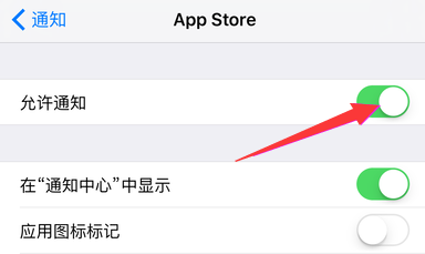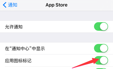 4、接着,我们会进入到该应用软件的通知设置界面,这时我们可看到它的应用图标标记这一项后面是开启的,所以这里我们要点击关闭它。