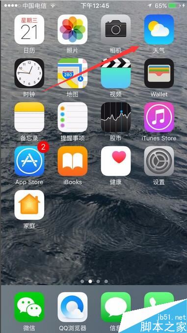 点击苹果手机自带的天气软件。