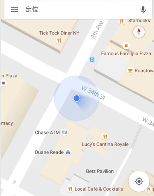 3、随后等待系统定位,在页面中可以看到设备在地图中的位置。地图中显示的蓝点即是你定位的手机的所在位置。