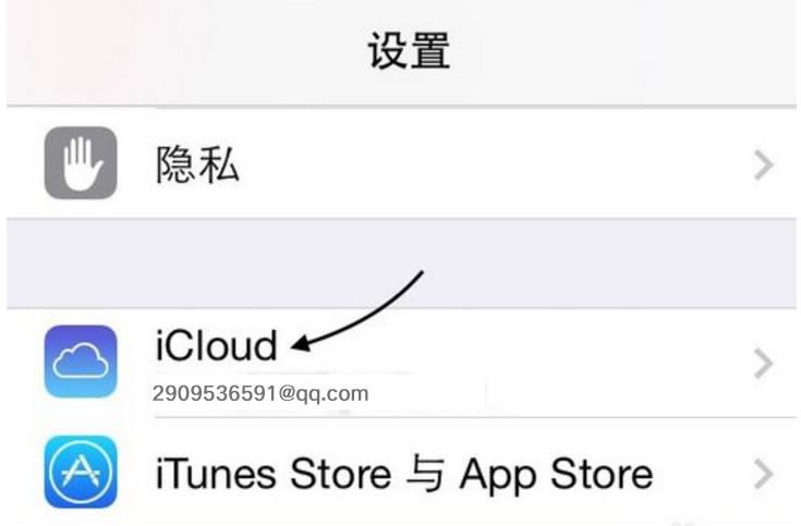 2、在设置列表中找到iCloud一栏,点击进入,如图所示