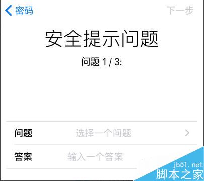 选择安全提示问题,一定要记住,不然忘了要找回来会比较麻烦