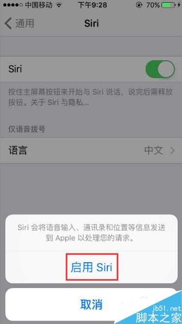 第五步,选择“启用Siri”。