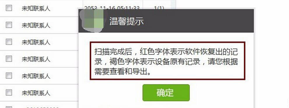需要注意的是,扫描出来的短信,红色代表删除后被恢复的短信,黑色表示手机中原本就存在的短信。