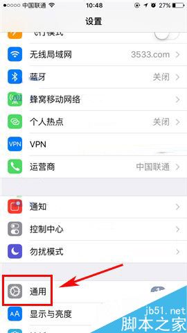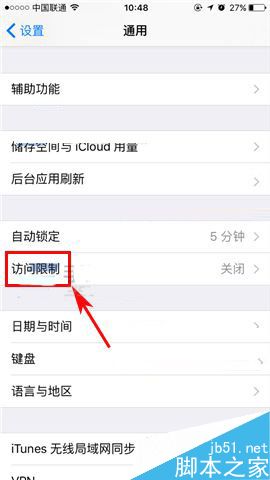 1)打开手机【设置】,然后找到【通用】,打开后我们再点击【访问限制】。(如下图)