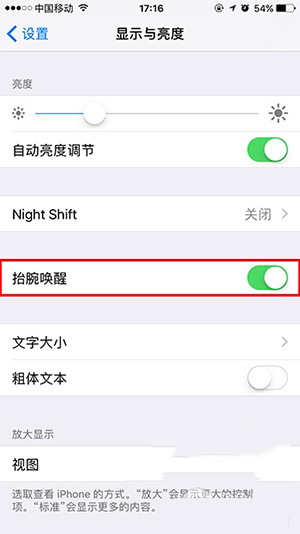 iPhone 7/7 Plus默认开启了抬腕唤醒屏幕功能,如果没有开启,可以在设置->屏幕与亮度中,开启抬腕唤醒功能。