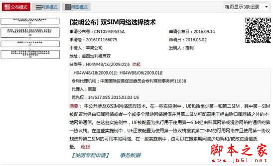此次,苹果在国内申请的专利有两项,分别是双SIM网络选择(专利号:2016101166075)和用于双SIM设备的功耗降低技术(专利号:2016100813788)。