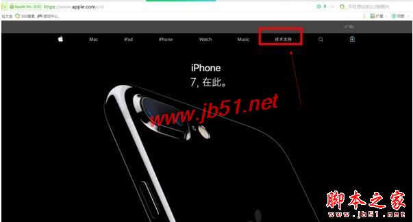 1、打开苹果官网地址选择技术支持,进入:
