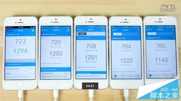 在这样的质疑下,有国外网友就做了一个超级有趣的测试,那就是找来5部iPhone5,让它们分别运行iOS6、7、8、9以及10系统,看最后的反馈,当然了结果你肯定不会想到。