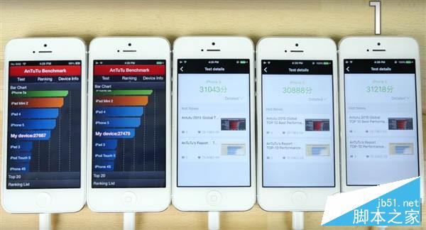 测试过程很简单,让这几款iPhone5进行开机、打开App、后台、WiFi下测试、Siri等多个环节的测试,最后还有安兔兔的跑分,其中运行iOS10的iPhone5跑分达到31218分,而iOS6仅有27687分,由此来看苹果并非空话。
