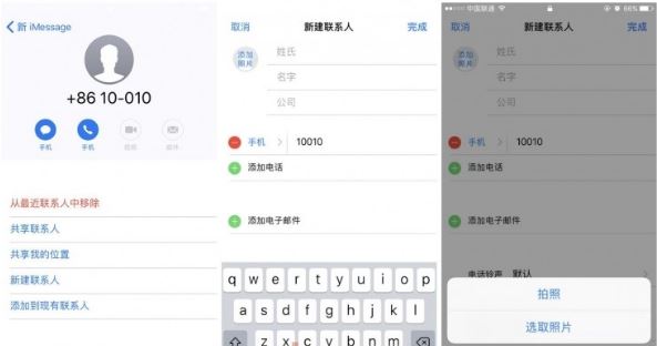 8.在上述左图非通讯录号码旁,会看到一个“i”标志,点击进入,可以看到把它添加到通讯录的界面: