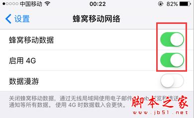 在打开的蜂窝移动网络页面中,将【蜂窝移动数据】打开,如果手机卡已经是4G网络卡,那么也一并打开
