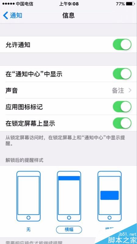iphone可以通过以下方式设置信息解锁后的提醒样式