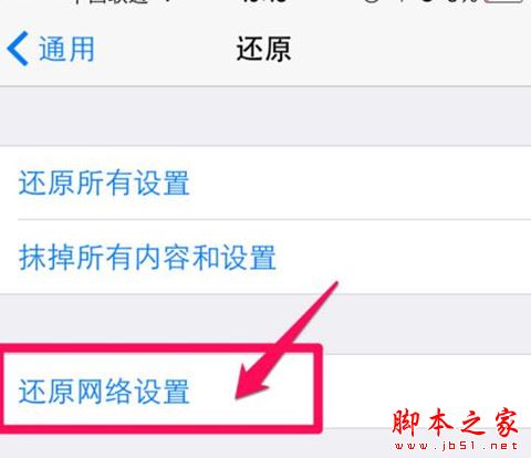 3、若重启以后,也出现仍然不能发送短信的情况,这时你可以尝试还原iPhone的网络设置。【设置-通用-还原】列表中,通过还原网络设置来解决。