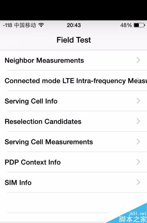 此时iPhone的调试界面,此时手机左上角将显示信号的具体强度;