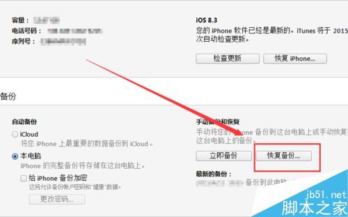 iPhone手机恢复出厂设置以后,我们重新恢复之前备份过的手机数据就可以了。在iTunes界面中找到【恢复备份】按钮,根据窗口提示完成操作即可。如下图所示。