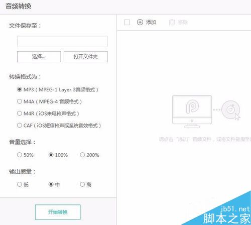 在转换格式中选中CAF,接着就可以添加想要的提示音了。