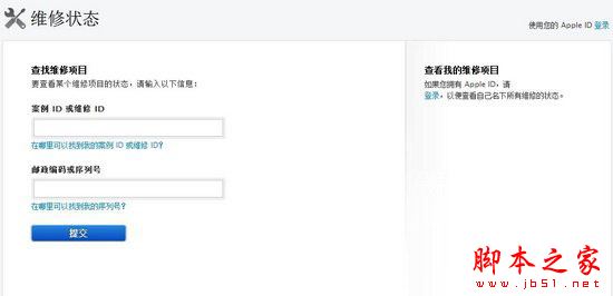 3、接着只需要把维修ID输入【案例ID或维修ID】框,点击【提交】就能查询了,维修ID就是送去维修时工作人员给你的那张维修单,上面就有维修ID号。(如下图)