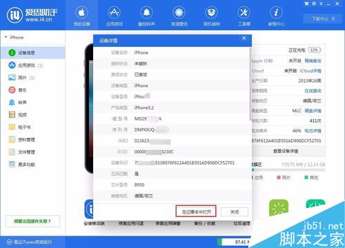 如下图,连接以后设备越狱激活状态、产品类型、串号序列号、生产日期保修日期等等,都可以看到;