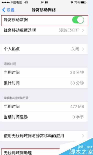 先点开设置,关闭无线局域网启用蜂窝移动数据,打开局域网助理