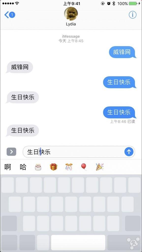 伴随着iOS 10系统的升级,苹果为iMessage也添加了多种特效,包括:震撼、放大、缩小、隐形墨水等。