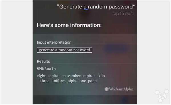 不过,目前这一服务仅限美国区,中国等语言地区还没有提供,所以用中文“随机密码”是不会获得Siri回应的。如果中国区用户想要生成密码,可以将Siri的语言切换到英语,使用英语提问,在中国一样可以获得随机密码。