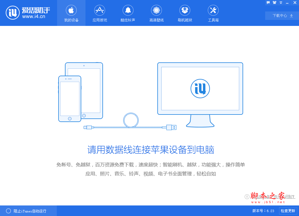 在电脑上安装好爱思助手后,我们在电脑上找到它并且打开进入,在进入的界面中我们找到“刷机越狱”,并点击它。