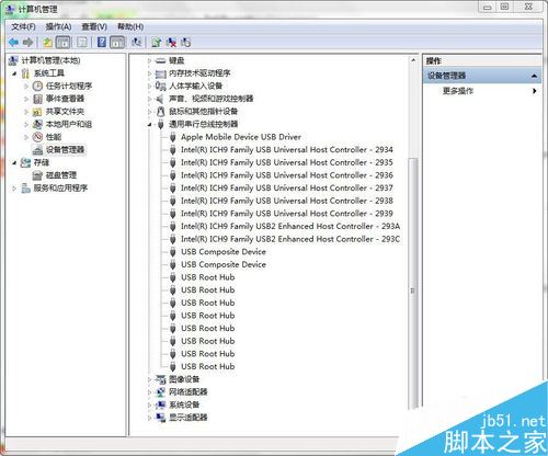 然后,右键点击【我的电脑】,选择【管理】-【计算机管理】,在左侧栏中选择【系统工具】-【设备管理器】,然后在右侧栏中,选择【通用串行总线控制器】-【Apple Mobile Device USB Driver】,然后右键点击,选择【卸载】。