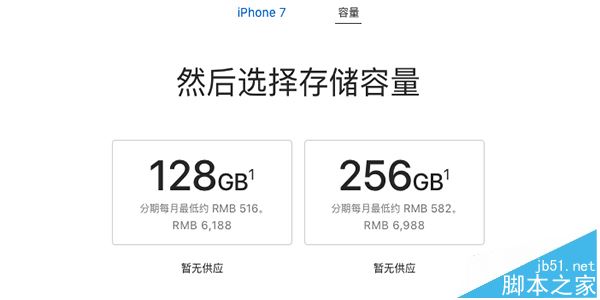 iPhone 7,128G容量 6188 元,256G容量 6988 元。