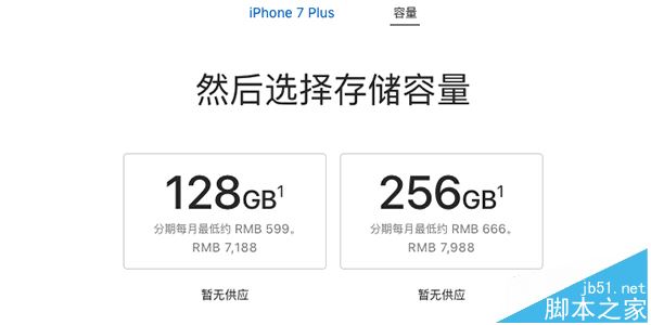 iPhone 7 Plus,128G容量 7188 元,256G容量 7988 元。