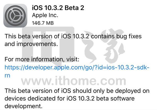 4月11日凌晨苹果再次为开发者预览版固件用户更新了最新的iOS10.3.2 Beta2开发者预览版固件更新升级,已安装相应描述文件的iPhone、iPad、iPod touch用户,可直接在设置中检查获取此次OTA更新。