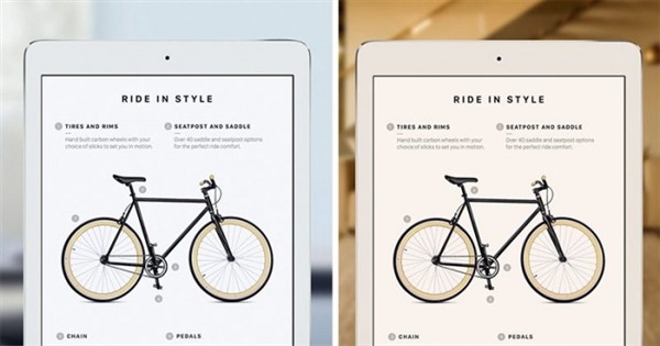 9.7英寸的iPad Pro上,苹果带来了一个很有用的功能,那就是屏幕支持True Tone功能,简单来说这是可以根据环境光线变化调整屏幕的色温。