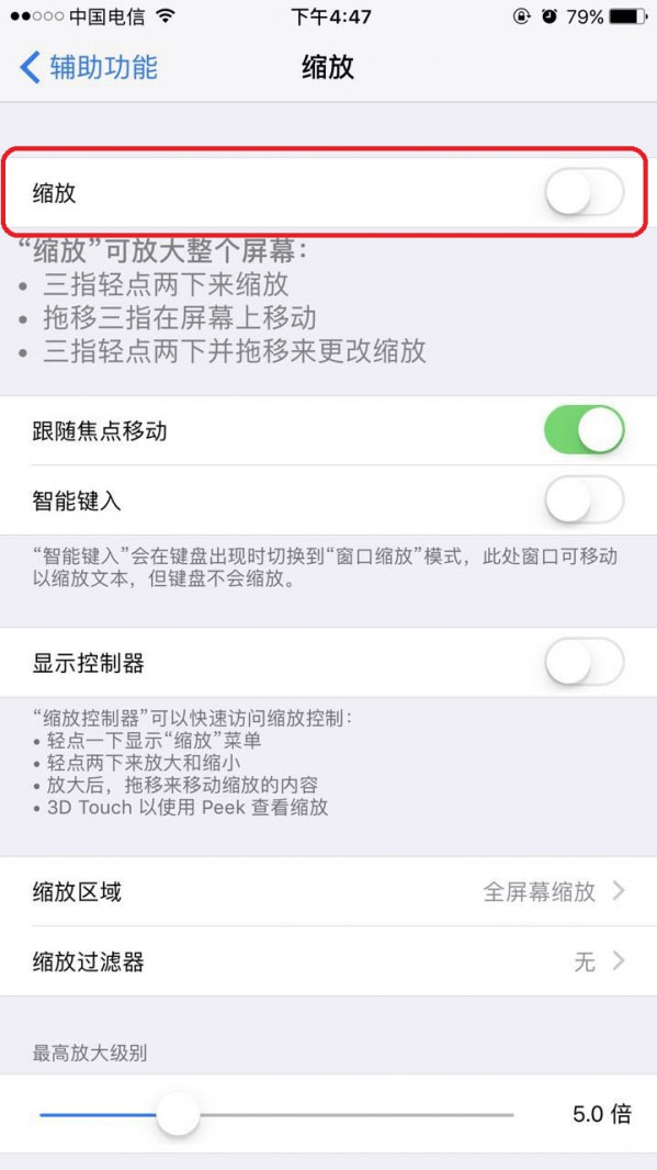 回到【辅助】功能,把最底下的【辅助功能快捷键】关闭
