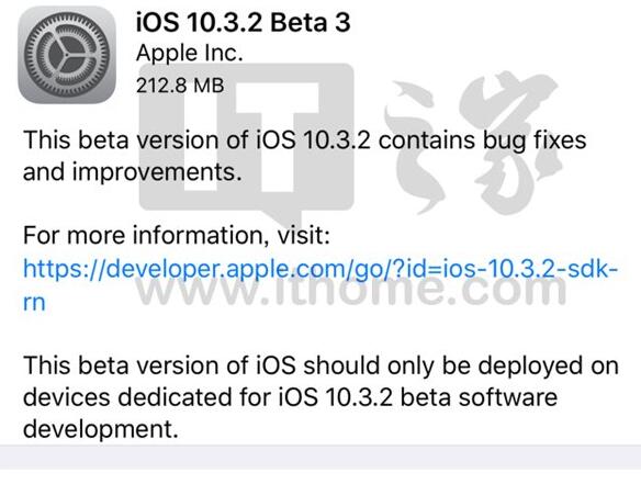 4月18日消息 苹果在今天凌晨再次为开发者预览版固件用户更新了最新的iOS10.3.2 Beta3开发者预览版固件更新升级,已安装相应描述文件的iPhone、iPad、iPod touch用户,可直接在设置中检查获取此次OTA更新。