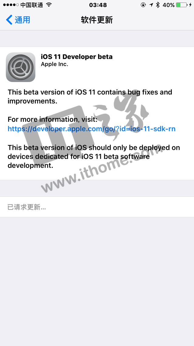 先更新描述文件,然后选择下载最新的iOS 11开发者预览版Beta1。