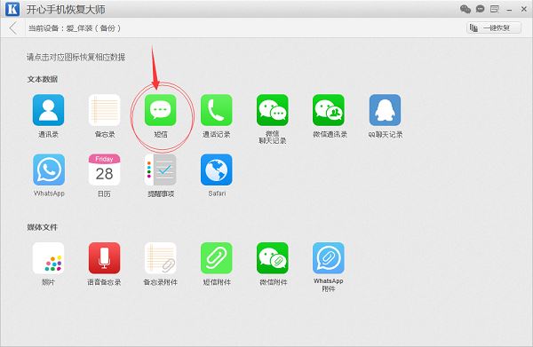 好了,上述就是关于苹果手机删除的短信如何恢复的方法。可能安卓用户会问,既然苹果手机可以恢复短信,那么我们的安卓手机的QQ聊天记录是不是也可以恢复啊?答案是可以的。下面,小编就来给大家介绍一下如何使用安卓恢复大师恢复QQ聊天记录。