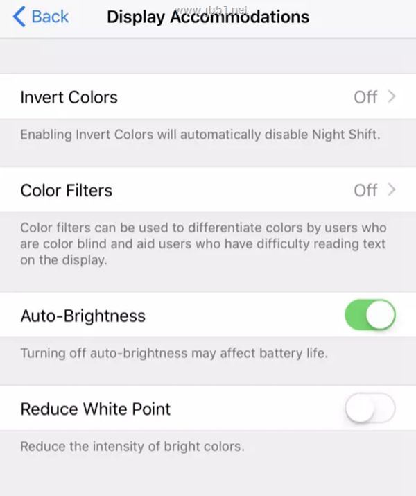 3)“自动亮度调节”移至“设置”-“通用”-“辅助功能”-“显示调节”