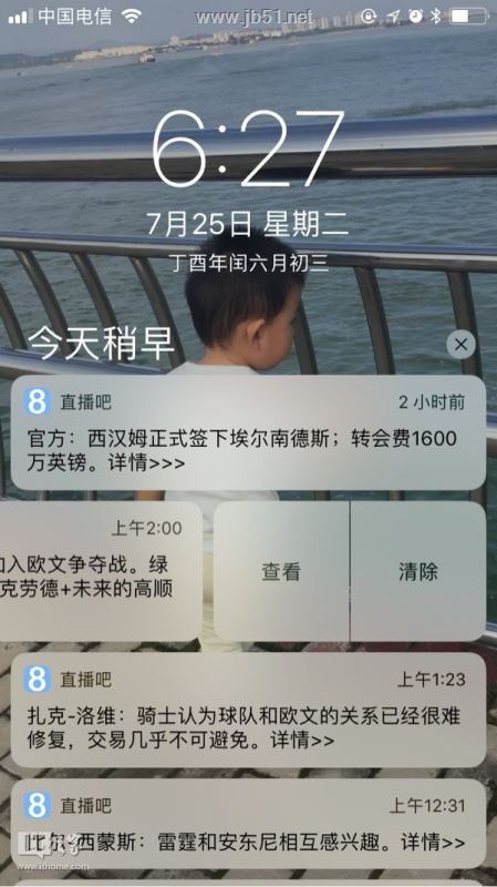 通知条目向右划动打开应用,向左划动观看/关闭▼