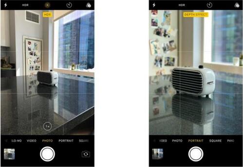 打开 iPhone 7 Plus 的相机应用,进入人像模式,在屏幕顶部看到“景深效果”出现的时候拍照。这样用户就可以从左下角的缩略图或者照片应用中找到拍摄的景深图。