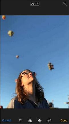 打开照片之后选择“编辑”,iOS 11 会自动的检测照片使用的景深效果,并在视图顶部显示一个小小的黄色按键。只要点击黄色的“景深”按键,你就能够在原来的照片和使用了紧身效果的图片之间切换。这个按键方便用户确认在一张照片上使用景深效果到底好不好看。