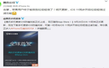 iOS11的短信过滤功能需要配合软件实现,依靠的是第三方的数据库,用户可以在更新之后,在App Store搜索支持iOS11垃圾短信过滤功能的App下载,打开“短信过滤功能”就可以使用。